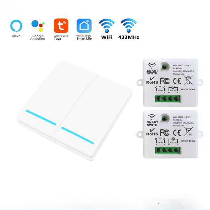 Set Întrerupător Dublu Fără Fir cu Revenire + 2 Controllere Wireless Inteligente – Control Lumini prin Aplicație si RF433, Alb